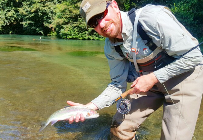 A recent guided trip with Scottish angler Rob. Testing Manics Primal rod easy turning over small dries in this picturesque spring creek surrounding
