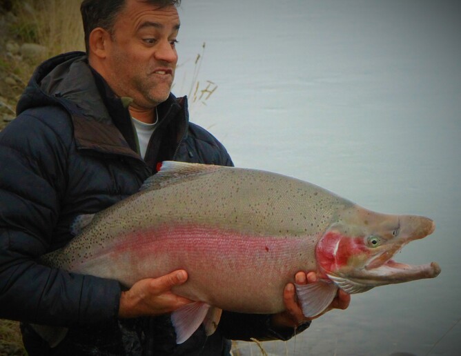 After a busy season on the water enjoying guiding clients into fish it was my turn. So, I grew up with cheesy shows like the Muppets "Pigs In Space" and the "Cannon Ball Run" yet I never thought to myself an adventure with local Hamiltonian angling mate Mark Etheridge would come to exactly that....3 days of learning the technical side of slinging Clear Drift Eggs thanks to Amazing Baits. Mark and I used relatively light tippet compared to the fish we were catching (7lb Fluro both Double X and Airflo, G3). We were surrounded by aqua coloured snow melt water and amazing scenery. Enduring the super cold weather I was thankful for my quality Simms apparel! Cutting to the chase these fish down south in the canals are something special! I was super stoked to land my personal best rainbow trout jack of 27lb and Mark his personal best 26lb hen...what a beauty...can't wait for next years mission down south!