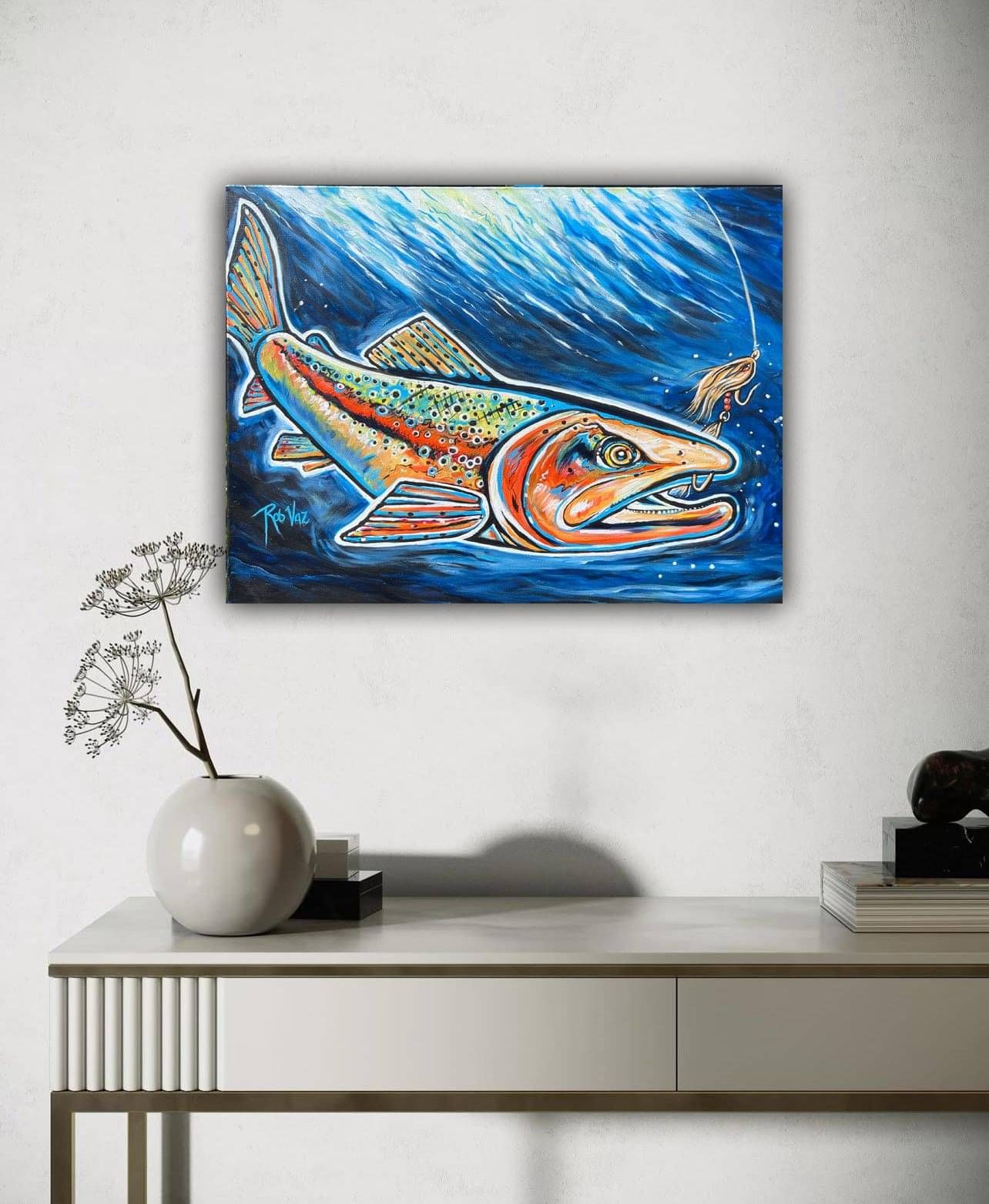 My other life is as a graphic artist, signwriter. I not only offer a fishing experience also the opportunity to capture great photos and turn these into magnificent memories for you on canvas. Displayed is a recent commissioned painting headed to the U.S.A. Enquire about my art and commission paintings or prints. All available on request. See my Instagram: rob.vaz.art